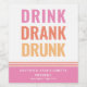 NewParkLane - Wine Label, fun quote for bachelorette parties, spring breakers and bored moms ;) with funny drinking quote 'DRINK DRANK DRUNK' in a fun, modern hot pink and orange typography.