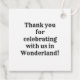 Here’s a great prop to add intrigue and whimsy to your special Wonderland party beverage. Set of 12 square favour tags has an image of the phrase “Drink Me” in colourful, old timey block lettering and two hands, each with a finger pointing at the word “Me” on white. The back is white with customisable text. See the entire Wonderland Favour & Gift Tag collection in the PARTY FAVORS section.