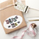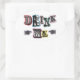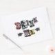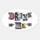 Oval white sticker with an image of the phrase “Drink Me” in colourful, old-timey block lettering and two hands, each with a finger pointing at the word “Me.” See matching favour tag. See the entire Wonderland Sticker collection in the INVITES | Stickers & Labels section.
