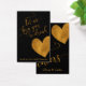 The background of this elegant, cheerful drink ticket can become any colour you choose. In a festive, elaborate script font, the words "let us buy you a drink" appear on the front of this modern drink ticket. The beautiful text has been embellished with a faux gold foil effect. "Good for One Adult Beverage" was added to the editable text field in a complementary serif font at the bottom. Use any other words you like, if you want to change the copy. On the back the beautiful graphic text overlay reads "cheers" and a template place holder was added for your names. On both sides a matching, asymmetrical, gold heart peeks in from the edge. The editable background is black in this example; change it to any colour you prefer. All layers are unlocked so you can resize or re-position any part of this card that you like, should you want to tweak the design. Please do not hesitate to reach out if you have requests or need customising assistance.