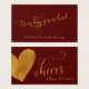 This elegant, cheerful drink ticket can become any colour you choose. In a festive, elaborate script font, the words "let us buy you a drink" appear on the front of this modern drink ticket. The beautiful text has been embellished with a faux gold foil effect . "Good for One Adult Beverage" was added to the editable text field in a complementary serif font at the bottom. Use any other words you like, if you want to change the copy. On the other side a matching gold heart peeks in from the edge. To its right, the beautiful graphic text overlay reads "cheers" and a template place holder was added for your names. The editable background colour is burgundy in this example. All layers are unlocked so you can resize or re-position any part of this card that you like, should you want to tweak this design. Please do not hesitate to reach out if you have requests or need customising assistance.