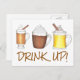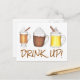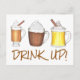 Postcard features original illustrations of three classic wintertime drinks, with DRINK UP in a fun font. Great for mailing Christmas or winter holiday greetings!