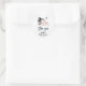 The sticker is made on wonderful paper and had no problem sticking to the bag that I purchased to put it on. I wanted to find a design that would be cute for the bride and groom and this one fit the bill as it has cute "bees" buzzing around and the wedding was taking place in a town called "Bee Cave". The packaging was great and protected the stickers. The website is easy to navigate and there are so many color choices. I had no problem finding a color that the bride was using on everything else selected. The design was adorable and there were many to choose from. You can make the figure as larger or smaller and you can place the photo and writting whereever you want to in the sticker. The printing is fabulous..better than expected.
