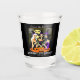 Drink up witches adult Halloween birthday party tableware personalised shot glasses, groovy retro witches having cocktails black orange white purple colours