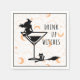 The perfect cocktail party napkins for a girl's night during the Halloween season! These feature a martini glass with a witch "riding" the brim of the glass in silhouette. A black cat and broom are at the base of the glass. Fun font reads "Drink up witches". The design is placed on a celestial orange and white background.
