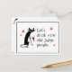 Let's drink wine and judge people! A popular funny quote about our favourite pastimes, wine drinking and people watching (and judging). Here's The Cabernet Cat, a hip retro black kitty wearing sunglasses and holding a glass of his favourite red wine. Send or collect him and this popular wine saying on a postcard today!