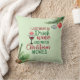 This fun Christmas throw pillow has typography that says I just want to drink wine and watch Christmas movies. It's decorated with pine boughs, berries, pine cones and some vintage style ornaments. There's also a glass of red wine with a Santa hat on it. The back side? Well, it says "And eat Christmas cookies too!" Both sides have a pale green background.