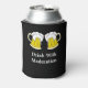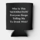 A funny can cooler with the saying, "Drink With Moderation" on one side and "Who Is This "MODERATION' Everyone Keeps Telling Me To Drink With?"