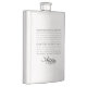 Sage advice from GK Chesterton adorns this sleek and simple flask design. "Drink because you are happy, but never because you are miserable. Never drink when you are wretched without it, or you will be like the grey-faced gin-drinker in the slum; but drink when you would be happy without it, and you will be like the laughing peasant of Italy. Never drink because you need it, for this is rational drinking, and the way to death and hell. But drink because you do not need it, for this is irrational drinking, and the ancient health of the world."