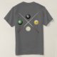 A double sided pool shirt with a humourous slogan on the front and pool related picture on the back.
