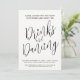 Post wedding drinks and dancing event mono simple black and white invitations. Personalise with your own event details. Other matching wedding products and colour options available. © Original design by Sarah Trett for www.mylittleedenweddings.com