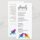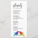 Introducing the slim drinks card from the "Rainbow Lovebirds Collection," a vibrant and stylish addition to your wedding reception. At the top of the card, set against a backdrop of radiant colours from the LGBTQ+ pride flag, the caption "Drinks" is gracefully displayed. Accompanied by a beautiful illustration of two lovebirds facing each other, the design captures the essence of unity and love. Below the header, a carefully curated selection of beverages is presented, each listed with meticulous attention to detail. From signature cocktails to fine wines and refreshing non-alcoholic options, guests are invited to indulge in a drink selection that reflects the couple's tastes and preferences.