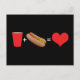 drinks + hot dogs = love postcard