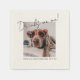 Fun wedding napkins with a photo and "Drinks on me" design. Customise with names, date, and picture to add a personal touch to your calabration.
