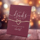 Elegant, minimalist, simple, funny burgundy red wedding Open Bar tabletop sign with gold rope heart and modern handwritten calligraphy script.