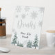 Drinks sign, silver winter wonderland baby shower, and bridal shower sign with pine trees and snowflakes.