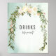 Drinks table sign for your guests for the baby sprinkle shower. Elegant white rose floral spray with green watercolor background.