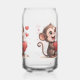 Drinkware Set Monkey Love Red Hearts Can Glass