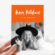 Send spooky greetings with this Halloween photo card featuring “Happy Halloween” in bold white hand-lettering. At the top, eerie speckled orange “blood” drips down over your personalized photo for a creepy yet fun effect. Add your name to the front for a unique touch. The back of the card features a coordinating speckled orange background, creating a cohesive design that’s perfect for sharing Halloween cheer.