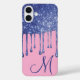 Dripping blue glitter, personalised with your monogram. Mobile phone case.