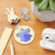 This pretty floral keychain features a beautiful macro photo of a Daffodil showing this plant in beautiful detail following a rain shower. The flower has been artificially coloured resulting in stunning white outer petals with blue veins and a pretty light blue trumpet. The photo is so detailed that you can see the little water droplets sitting on the flower. The background is pale yellow.