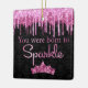 Dripping Glitter Pink Black Born to Sparkle Ceramic Ornament