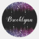 Dripping Glitter Rain Purple Sequins Sparkle Black Classic Round Sticker