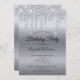 Dripping Glitter Silver personalised birthday invitation. Personalise this invitation with all the details for your party. You can add the Birthday year to the " Birthday party" line of the invitation.