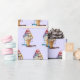 Dripping ice cream cone with sprinkles on a pastel purple background.
