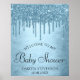 Glitzy glam calligraphy script baby shower theme on a feminine turquoise and aqua blue glitter paint drizzle in an melting icing pattern background. From the "Icing Drip" collection, this girly texture features a faux metallic slime with an iridescent sparkly sheen that is perfect for any event or everyday. For other colors or matching products, please contact the designer.