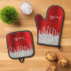 Dripping Silver Glitter Red Glam Name Oven Mitt & Pot Holder Set