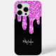 Dripping Sparkles Glitter Pink Black Monogram iPhone 15 Pro Max Case. Personalise phone case with your initial and name.