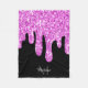Dripping Sparkles Glitter Pink Black Monogram Fleece Blanket