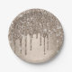 Dripping Taupe Glitter | Champagne Gold Drizzle Paper Plate