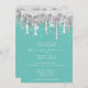 Drips Glitter Bridal Wedding Mint Silver Grey Invitation