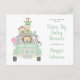 If family and friends can't be close together, celebrate the modern mother-to-be with a drive by baby shower. This cute gender-neutral baby shower postcard invitation features an illustration of mint green baby animals (lion, zebra, elephant, monkey and giraffe) piled into a mint green safari vehicle and "Drive By Baby Shower" and the mother's name in a coordinating script. You can easily personalise the shower details (where and when to drive by, refreshment and gift areas, social distancing or other safety precautions, whether the honoree will hold a later online event to unwrap gifts, registry and a contact for more information) and you can also add a name on the vehicle and the shower date on the license plate, or leave blank.