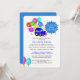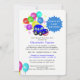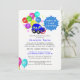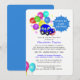 Fun cartoon car and colourful party balloons for a baby boy drive by shower celebration invitations.