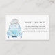 A book request insert card for drive by baby shower or baby shower by mail. Featuring watercolor blue car with elephant and poem: "ONE SMALL REQUEST, WE HOPE NOT TOO HARD PLEASE SEND OR BRING A BOOK INSTEAD OF A CARD THEY'LL CHERISH THE BOOK, WELL LOVED OR BRAND NEW PLEASE SIGN THE INSIDE WITH A MESSAGE FROM YOU!"