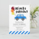 Drive-by Birthday Cute Blue Car Balloons Simple Invitation