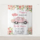 Drive By Floral Pink Drive Through Shower Backdrop with Vintage Decorated Pink Beetle Volkswagen Car and Floral Bouquet