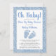 Drive By Oh Baby Blue Glitter Feet Baby Shower Invitation