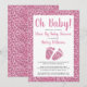 Drive By Oh Baby Pink Glitter Feet Baby Shower Invitation