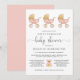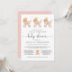 Celebrate the modern mother-to-be from a safe distance with a drive through baby shower. This baby girl shower invitation features a parade of pastel pink and gold retro baby carriage watercolors. Personalise the text on the carriage with a name or gender (e.g., It's a Girl!) or leave blank. "baby shower" is written in a stylish contemporary script. A small pink and gold teddy bear watercolor at the bottom of the invitation separates text blocks of the party details. You can easily personalise the drive through shower details, including where and when to drive by, areas for a gift drop off and snacks, safety precautions, whether the mama-to-be will open the gifts then or host a live facebook, instagram or other online event to unwrap them, registry information and where to get more information.