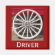 Photograph of a white fancy wagon wheel with customisable text "driver" printed below.