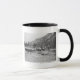 Driving pack mules across a river mug