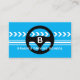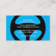 Driving school logo business card template. Custom colour design with black steering wheel logo. Personalise with driving instructor name and monogram . Blue and black or custom colours. Also great for mechanic, Uber taxi driver, lease or rental company, car show booth, auto repair shop, driving lessons, car detailing, transport service, road work, car tuning etc.