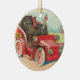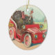 Ornament featuring vintage Thanksgiving postcard image of motoring turkeys.