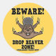 Warning sign for Australia's infamous Drop Beaver, which drops from the Eucalyptus trees down onto unsuspecting hikers and picnickers, latching onto their faces and slapping their chests and bellies with their beavery tails! T-shirts, hoodies, cards, gifts.