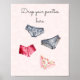Panty game lingerie bridal shower sign features gray lacy background and sexy panties with “drop your panties here“. Coordinates with lingerie bridal shower invitation.