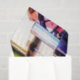 The artwork on this Tissue Paper is an original photograph of a drum set. The shiny black drums with their silvery rims reflect the colours of the lights in the studio, blues, reds and greens. Cymbals above the drums wait to be struck.